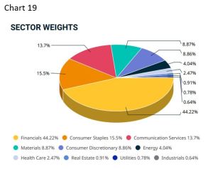 Indonesian banking sector’s profits are high and Capital Adequacy Ratio (CAR) is well above Basel III standard, highlighting the capacity for domestic banks to supply credit to the economy (Chart 18). The still low credit disbursement in the economy and high net interest margin set the positive outlook for the sector, although valuation is not cheap for the top big banks, dominated by 4 large SOE and 1 private banks. Indonesian benchmark equity index is heavily tilted towards financials, in which many are exposed to commodity-related activities (Chart 19).