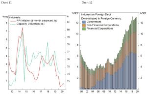 Indonesia’s macro profile has significantly improved in the past decade despite still running fiscal and current account deficit. First, government spending has been reoriented toward building human and capital stock, supported by the country’s high savings rate, while public debt level remained among the lowest across EM countries. Second, monetary policy has been kept on a tighter stance, resulting in disinflationary forces in recent years and a relatively stable rupiah. Lastly, foreign-currency borrowing, albeit more than doubled in the past decade, is coming from a low base and has largely been due to the government rather than corporate sector.