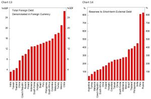 Prior to the Asian crisis, Indonesian corporates have largely borrowed in foreign-currency denominated loans. The banking crisis and wave of defaults proceeding the collapse in Rupiah have shifted the trend, with the government’s foreign-currency borrowing increasing significantly while corporate sector’s borrowing size remains the same, relative to the economy (Chart 12). However, despite foreign-currency borrowing has more than doubled in post-2008 crisis from 5% of GDP to 13% of GDP currently, Indonesia still ranks favorably in EM universe in terms of foreign debt level relative to its economy and foreign reserves (Chart 13 and 14).