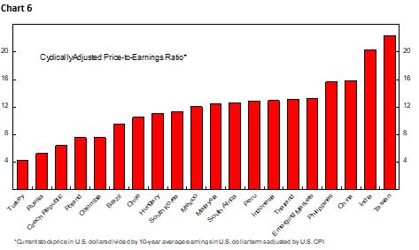- For the long-term story, look for the next China/India in the coming decade. Our first pick is Indonesia, which has grown above 5% rate annually in the past two decades and has a large, 250 million population with the majority still in productive age. Indonesian equity is attractive, according to our Global Equity Strategy model, and Indonesia’s Cyclically Adjusted P/E (CAPE) ratio, at 13x, is much cheaper than other high-growth Asian countries such as India, China, and Philippines (Chart 6). In the past two decades, Indonesian government has largely capped its fiscal deficit below 3% and public debt level as % of GDP is lower relative to other EM countries. Meanwhile, the central bank has became more orthodox and has a bias to maintain stability at the expense of boosting growth through cheap credit. Whereas Chinese and Indian banking systems have liquidity and often solvency problems, Indonesian banks’ Capital Adequacy Ratio (CAR) is much above BASEL III standard and loan-loss provisioning has been aggressive. The bottom line is that Indonesian private and public sector have both undergone through a reform since the Asian crisis and are much less vulnerable.