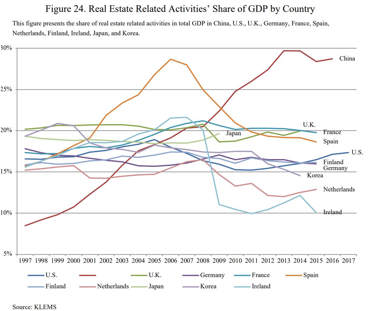 - Chinese real estate investment takes a much higher proportion in GDP than U.S.