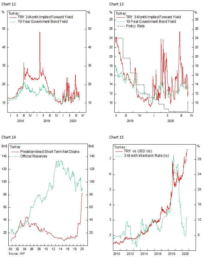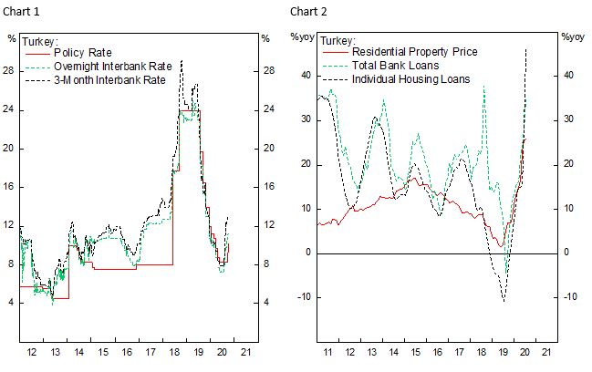 The Central Bank of the Republic of Turkey finally capitulated to market pressure and raised its policy rates by 200 bps last week amid a weakening lira. This is a reversal of its aggressive easing policy since the 2018 crisis, when the central bank has been under government pressure to bring its policy rates into single digit to prop up growth amid double-digit inflation, currently hovering around 12%. Last week’s decision, however, should not come as a surprise. CBRT has been tightening bank’s lending rate – which have historically point to the direction of its monetary policies – since August (Chart 1) and declining foreign exchange reserves have drained out the central bank’s ability to prop up the lira. There are few developments worth highlighting: