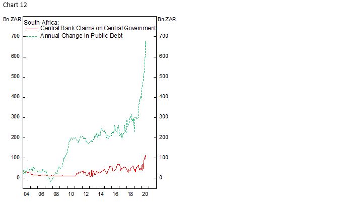 On a more positive note, the Rand is currently cheap and investors with high-risk tolerance should long the currency against the dollar (Chart 8). Inflation is well under control – despite the significant fall in currency – and the central bank’s easing cycle seem to be over (Chart 9). Rising commodity and mineral prices have also led to an improvement in South Africa’s terms of trade, which historically bodes well for the currency (Chart 10). As for the government bond, the investment case is not clear cut. Foreigners have sold off some 15% of outstanding government bonds while the central bank has been partially financing the government deficit (Chart 11 and 12), which may have kept yields elevated. South African nominal and real bond yield indeed is among the highest in EM, but the significant deterioration in the country’s fiscal outlook and lack of clear way out make the risk/reward of buying its government bonds unattractive.