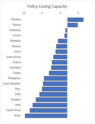To assess the capacity of EM countries in facing a prolonged economic slump, we rank these countries based on their policy support capacity – measured by real policy rate (%) plus government balance (%GDP). Asian countries, except India, rank well according to this metrics, with Indonesia, Mexico, and Chile as our favorite. Chilean equities are heavily concentrated and correlated with copper prices, whose price have surge of late. The divergence between Chilean stocks and copper price we identified last year has only widened further, creating opportunity for investors. Meanwhile, both the MXN and Mexican stocks are cheap even prior to the pandemic; the dollar weakness should supercharge the rally in the next few years. Indonesian and Brazilian equities are also interesting to some extent, but the later is very prone to external shock due to its low policy rate and poor fiscal condition, which may pressure the BRL from appreciating.
