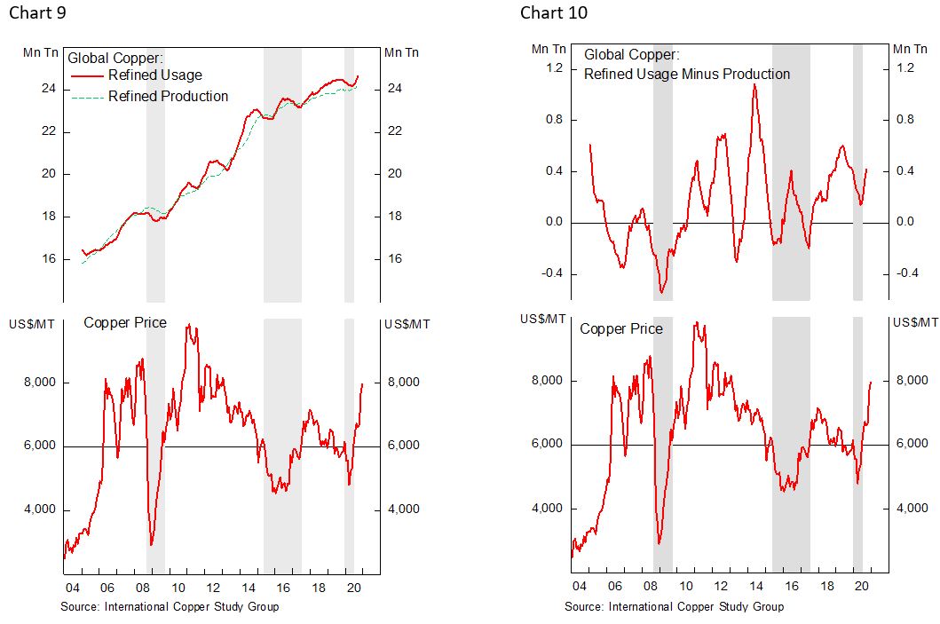 - Higher copper price and structural bull market for the base metal is likely this decade. Investors should overweigh the base metal commodity complex and emerging markets in a strategic allocation as a hedge to the inflation risk coming from higher commodity prices and potentially weaker dollar (Chart 15).