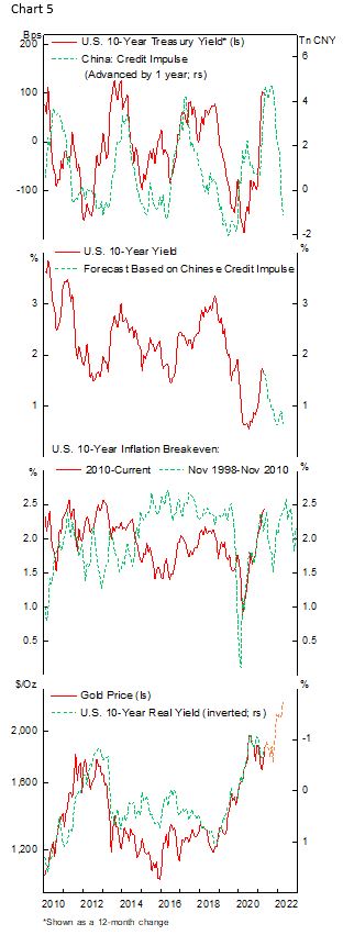 Should our base case scenario play out – weaker dollar and lower yields – the rally in precious metals will continue as lower real yield pushes up its fair value. Chart 5 shows the tight correlation between U.S. Treasury yield rate of change and Chinese credit impulse, which point to roughly 100 bps decline in yields in the coming 12 months. Slowdown amid still high unemployment rate and slack in the labor market should allow the Fed to be patient before raising rates, supporting yields lower.