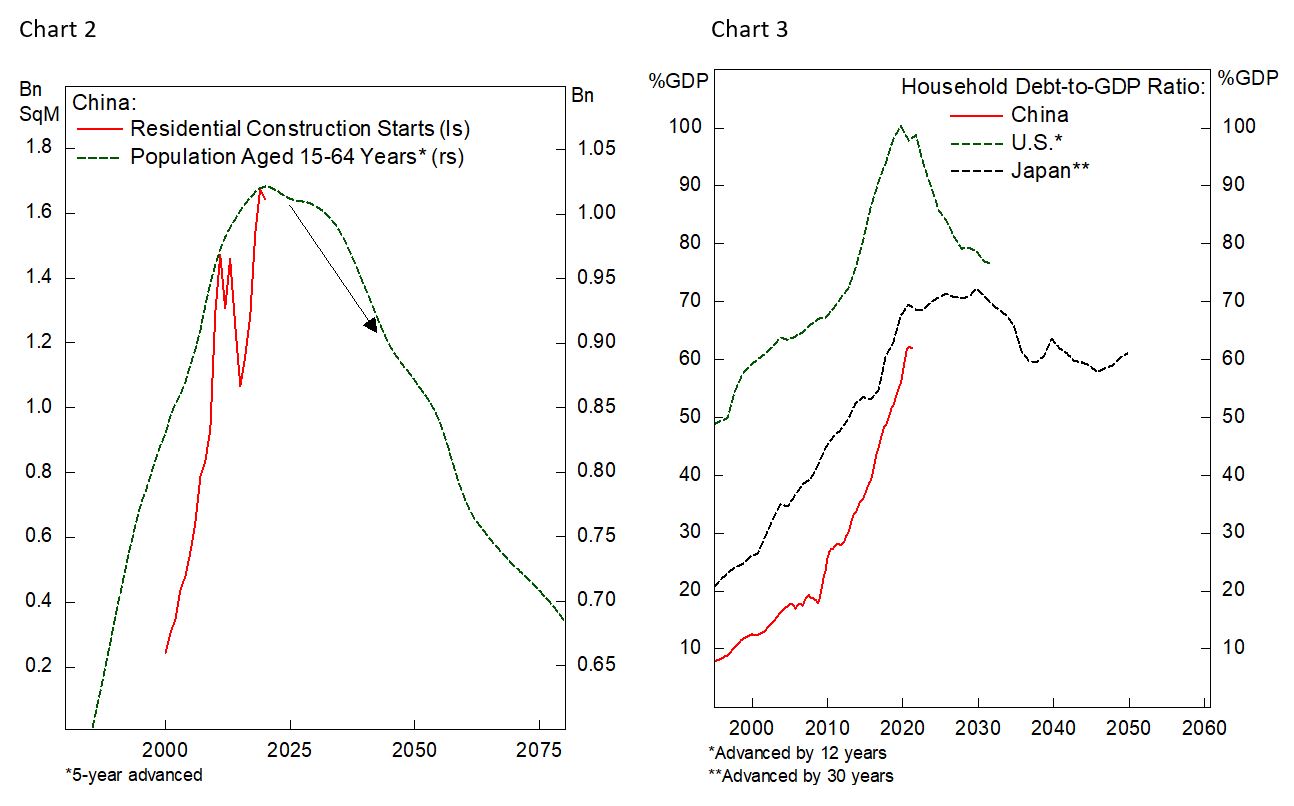 In the longer-term, Chinese GDP growth may average under 6% in the coming decade, with the impact from slowing real estate and construction activity accounting for 0.7-1% decline of real GDP growth annually (Chart 5 and 6).