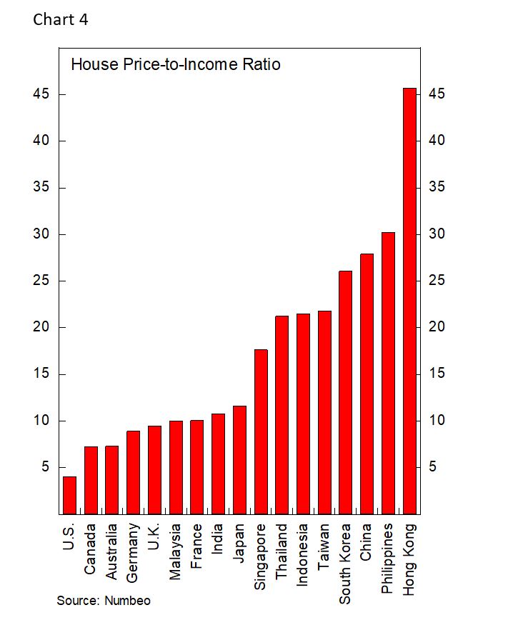 - Chinese household leverage is rather high for its income level and an accelerated rise since the Global Financial Crisis (GFC) has coincided with rising residential expenditure for households (Chart 3). Without a rapid income growth or structural decline in interest rate, high residential prices bode poorly for household consumptions and further lower Chinese real GDP growth. With households already stretched by mortgage payment, demand for property should decline on the margin.