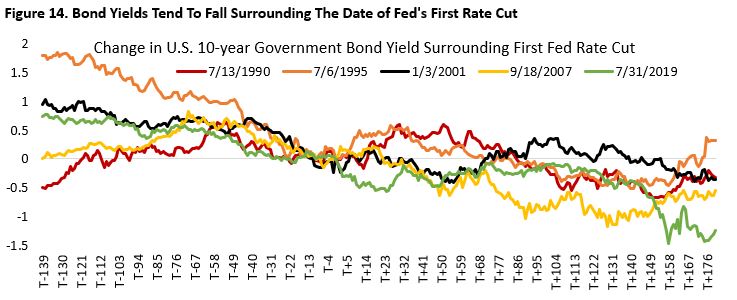 - GIC is attractive vs diversified fixed income allocation: the outlook for continued progress on inflation, slower U.S. growth, and softer job market should be a tailwind for the fixed income market. Figure 14 highlights the tendency for long term bond yields to fall surrounding the date of Fed’s first rate cut. Granted, spreads are tight, but fundamental has been holding up well and we prefer high quality issuers in the IG space which should bode relatively well in a mild economic slowdown.