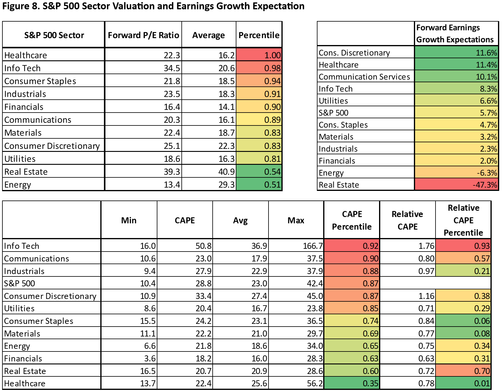The drawback here is that industrials are currently trading at a richer valuation compared to discretionary, as measured by both forward P/E and cyclically adjusted P/E ratio (Figure 8). This is mainly because investors expect much higher earnings growth for consumer discretionary sector (+11.6%) in the coming year compared to industrials (+2.3%), which hinged on the assumption of decent labour market condition in the coming year and earnings growth from Amazon and Tesla.