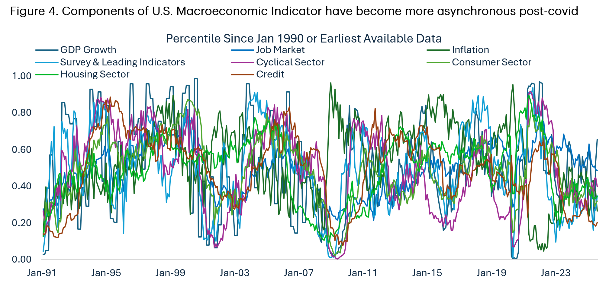 The various categories in USMI tend to ebb-and-flow together, which translates to the broader U.S. business cycle, but is not always in sync with each other (Figure 4). For instance, the consumer sector tends to be less volatile than the housing sector that is more sensitive to monetary policy and credit cycle. At a higher level, however, readers should note that all these indicators are influencing each other.